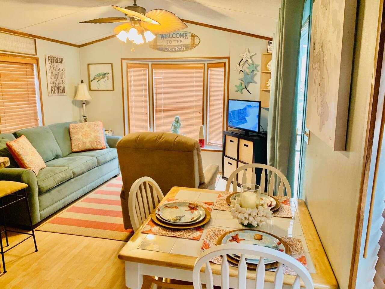 "Come make memories in this Cozy Beach Cottage" The Cottage is a one Bedroom & Sofa-room that is nestled in the private cul-de-sac of the Premier Addition Section of Ocean Lakes Campground. The bedroom has a Queen size bed with ceiling fan and tv in the room. The family room has a recliner, A Queen size sofa that pulls out into bed- Full Kitchen- PLEASE READ ALL HOUSE RULES "Pets 20lbs or less"